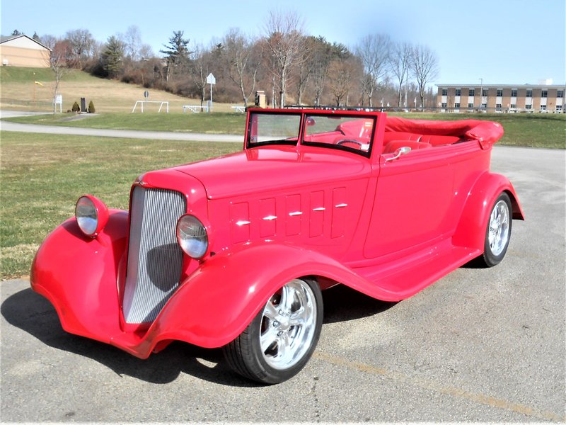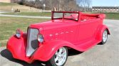 1933 Chrysler Street Rod Convertible Sedan, (Title will take approx. 4 weeks),5.7L V-8 Engine with Custom Made Engine Cover,4-Speed Automatic Transmission with Overdrive,Bright Red Exterior with Matching Red Leather Interior,Tan Haartz Convertible Top with Matching Boot,All Steel Body,Rare Limited Production Chrysler Convertible Sedan Model,Comprehensive Restoration,Purportedly Exported to South America, Staying There Until 1989 When Brought to Memphis, TN for Restoration,Custom Frame with Finished Undercarriage,Billet Specialties Pulley Setup,Chrome Alternator and Air Cleaner,Shorty Block Hugger Headers with 2.5″ Polished Exhaust and Chrome Mufflers,Custom Made Dash with Classic Instrument Gauges,Custom Tilt Steering Column,Vintage Air,Kenwood AM/FM/CD Player,4-Wheel Disc Brakes,Billet Specialties Wheels,Cover Car for Street Rod Builder Magazine, December 2007,Includes Picture Book with Restoration Photos and Later Magazine Photos