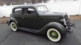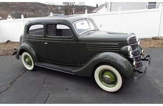Ford Model 48 Tudor . Frame Off restoration. This Beautiful 1935 Early Ford V8 is in mint condition. It can be driven anywhere and enjoyed right away, needs nothing. Authentic paint, interior fabrics, accessories and details. Green exterior, Tan Mohair interior. Completely rebuilt engine, transmission and drivetrain. Everything is new. New Ribbed Sidewall Goodyear 650-16 Retro/Deco design tires. This classic is Correct for 1935 factory specifications with the only non- conforming upgrades found under its hood. It has a later model 24 stud flathead V8 motor that runs perfect and hauls the mail!