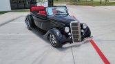 5.7L V8 with 2×4 Carburetors Aluminum Heads Aluminum Intake Electronic Ignition Ceramic Coated Headers Dual Aluminized Exhaust System 4-Speed Automatic Overdrive Transmission 9 Rear End 3.5 Gear Ratio P225/40 ZR18 Front Radials P255/45 ZR20 Rear Radials Coys Chrome Custom Wheels Rack & Pinion Steering Polished Ididit Tilt Steering Column Custom Steering Wheel Dakota Digital Analog Instrumentation Wilwood 4 Wheel Disc Brakes