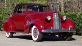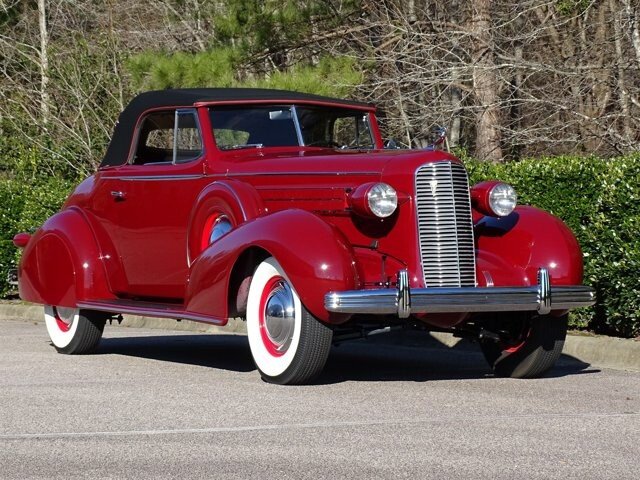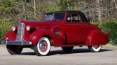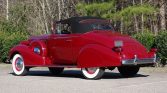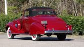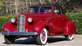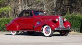 1936 Cadillac convertible is the recipient of a high-quality restoration. The car is equipped with a 322ci L-head V8 engine and 3-speed manual transmission. It has been well cared for by its current owner both cosmetically and mechanically and is road ready. Other features include twin side-mounted factory spares with covers, red leather interior with matching red convertible top piping, wide whitewall tires with full wheel covers and beauty rings, factory radio and much more Art Deco appeal!