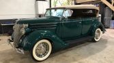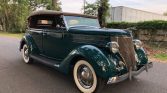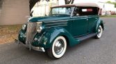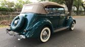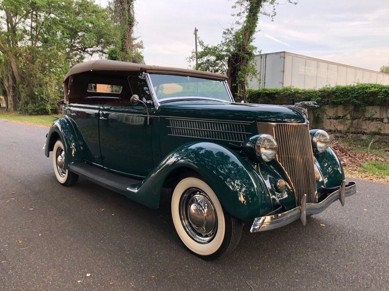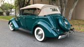 1936 Ford Phaeton Cabriolet,Flathead V-8 Engine,3-Speed Manual Transmission,Green Exterior over Dark Saddle Interior,Tan Convertible Soft Top,Wind Wings,Rear Mounted Spare,Quality Undercarriage,Meticulous Restoration,