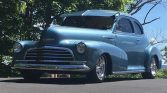 1948 Chevy business coupe style master. Custom paint job with PPG Basecoat clearcoat, with silver faint ghost flames on hood and front fenders.