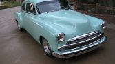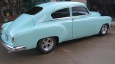 1951 Chevy two door Fleetline . Full body-off restoration . Small block Chevy motor with Tuned port injection. 700R-4 Automatic overdrive transmission , power Rack and Pinion steering , Power disc brakes on all four wheels , Ford 9″ rear end with highway gears , Vintage air conditioning , Custom aluminum radiator , full custom Green interior with Tan carpet and mats , All new Vintage gauges with two tone dash , New tinted glass thru out , Powered coated chassis , 2 1/2″ dual exhaust , Polished 15″ American Racing wheels with radial tires.