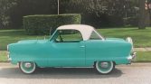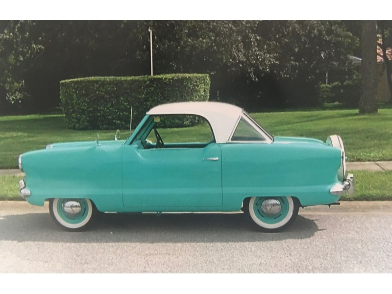1954 Nash Metropolitan Coupe,Original 4 Cylinder Overhead Valve Engine,3-Speed Manual Transmission,Green & White Exterior over Tan, Green & White Interior,Show Quality Paint in Original Colors,AM Radio,New Interior,Dual Master Brake Cylinder,Four New Radial Wide White Wall Tires,Continental Kit,Runs Excellent,