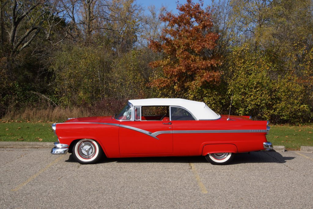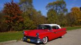 1956 Ford Sunliner Convertible Custom. 312 engine w/ 3- 2-barrel Carb set up, 4-speed manual transmission, Ford 9″ rear end, New Convertible Top, New power brakes, custom trunk, Misc spare parts. Many other custom features and improvements.