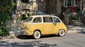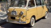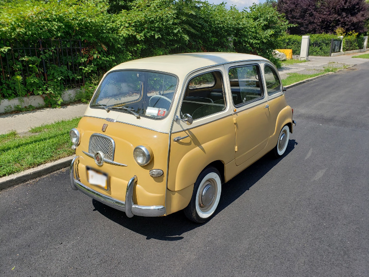 It features a two-tone yellow paint scheme, green vinyl upholstery, and is powered by a 663cc inline-four with a 4-speed manual transaxle. Recent servicing includes a valve adjustment, carburetor rebuild, and more.