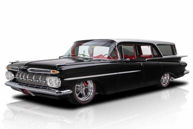 Has an authentic V8 Brookwood since the day it was fired, this wagon currently rolls with 383 cubic inches of fresh BluePrint Engines small block! That 383 spins power through a tough 700R4 4-speed, which twists a proven Currie 9-inch. Everything scoots on a 1959 factory suspension thats been spiced with RideTech shocks, RideTech StrongArms, Hotchkis trailing arms and trick RideTech air bags.