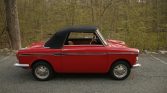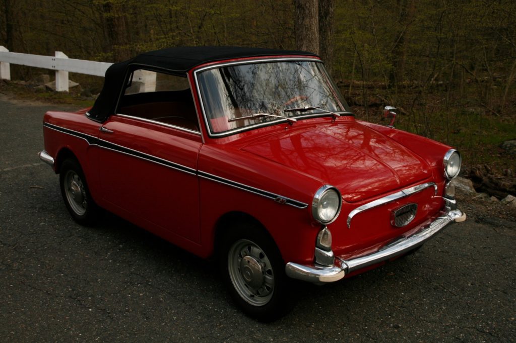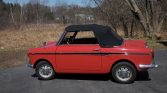 Imported from Italy to the US, boasts a red exterior, tan interior, and is powered by a 499cc twin mated to a four-speed manual transaxle. It features a Nardi steering wheel and wood shift knob.