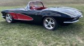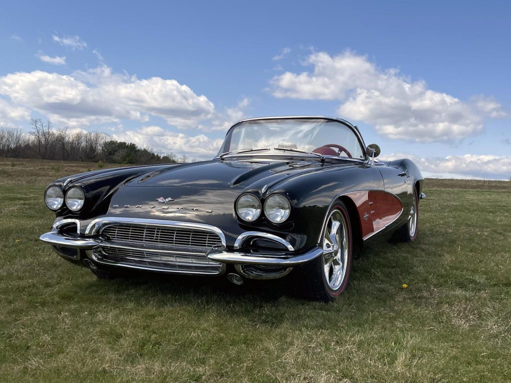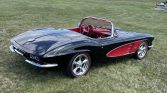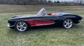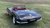 The body was refinished in black with red coves and mounted on a replacement steel tube chassis, the interior was retrimmed with red leather upholstery, and a 6.2-liter LS3 V8 was installed and paired with a Tremec five-speed manual transmission and a limited-slip differential. Additional modifications include Borla fuel injection with Eight Stack induction, a FiTech engine-management system, a dual exhaust system equipped with electric cutouts, four-wheel disc brakes, C4 Corvette-specification independent suspension with QA1 adjustable coilovers, 18?…