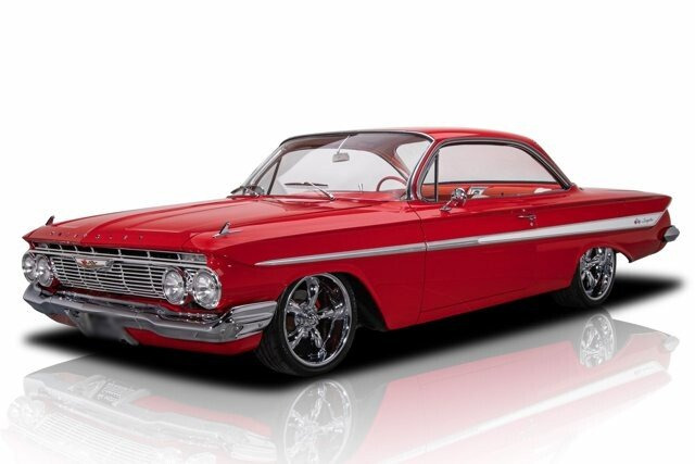 Chevy Impala Resto-Mod GM LS V8 4L60E 4-speed PS PB A/C Air Suspension , frame-off restoration .Today, the car walks a fine line between tastefully modern and traditionally conservative. Under the car, solid, lovingly undercoated floors shade a massaged chassis thats been thoughtfully upgraded with an aftermarket sway bar and fully adjustable Air Lift air springs. The trusty LS motor powers a dressed 4L60E 4-speed, which utilizes an EZ-TCU controller to spin a familiar GM dropout. Easy turns are funneled through power-assisted steering. Red GM calipers use modern power assist to squeeze a quartet of vented rotors. And all that premium hardware rolls on chromed Coys C-5s spin Firestone Firehawk Indy 500s.