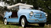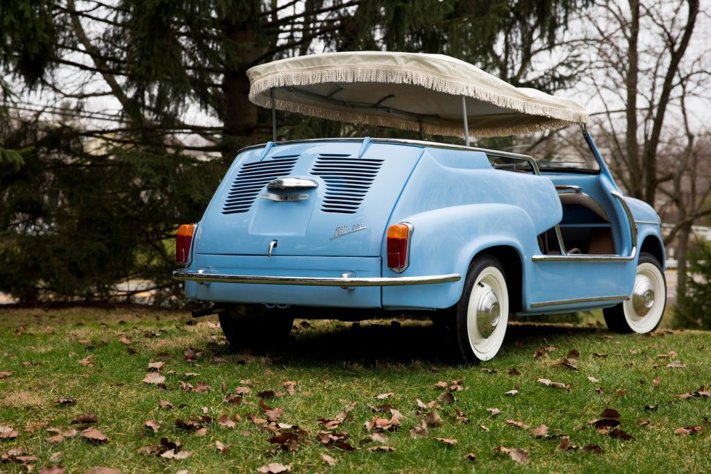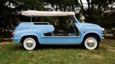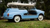 Refurbishment work performed that included a repaint in blue, installation of tan square-weave carpeting, refurbishment of the braking and electrical systems, replacement of the water pump and suspension bushings, and more. Power comes from a 633cc inline-four paired with a four-speed manual transmission, and the car features refinished wicker seats as well as a Surrey top.