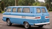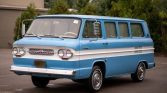 This 1963 Chevrolet Corvair Greenbrier Window Van is one of the reportedly only 11,993 Greenbriers produced in 63. It is equipped with its original 145ci. Pancake six-cylinder engine backed by a automatic Powerglide transmission. Correctly refinished in the original colors of Brigade Blue and Cameo white, it features seating for nine passengers with room for luggage. Additional features include manual windows and screens in the rear, seat belts in the front seat, stereo, five radial tires, and original…