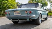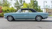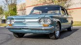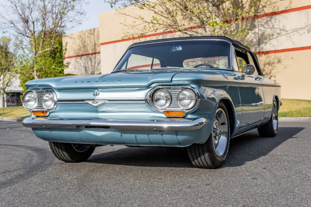 Elevating classic charm, this 1964 Chevrolet Corvair Monza Spyder convertible underwent a comprehensive refurbishment . The car is equipped with a turbocharged 164ci flat-six engine paired with a four-speed manual transaxle, delivering an engaging driving experience. Dressed in a captivating Azure Aqua exterior and adorned with features such as a black soft top, 15″ Rally-style wheels, louvered engine cover, and chrome bumpers, the aesthetic appeal is complemented by the comfort of black vinyl upholstery in the front bucket seats. Technological enhancements include a Bluetooth-enabled factory stereo.