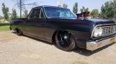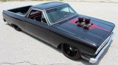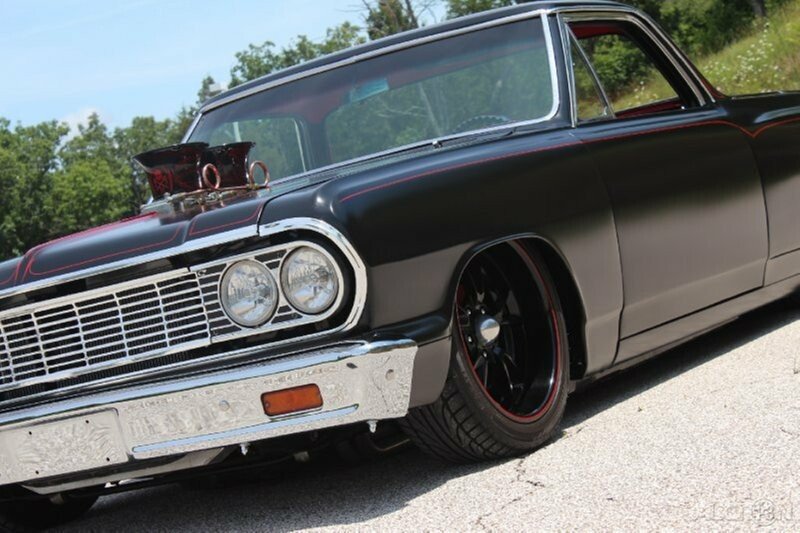 1964 Chevrolet El Camino was modified in 2019 and ispowered by a 355ci V8 paired with a three-speed automatic transmission. The exterior has been refinished in satin black with red pinstriping over a customblack and red interior, and additional features include an airbag suspension,power steering, front disc brakes, bolstered bucket seats, aftermarketinstruments, and a billet-aluminum steering wheel transmission.