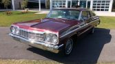 1964 Impala SS Maroon .Chevrolet Factory Code nr.1447 Impala SS 327 cubic inch rated by the factory at 300 horsepower V8 engine 4-speed manual transmission Presentation all looks factory stock Correct black air snorkel air cleaner assembly 4-barrel carb Factory Chevrolet Orange painted engine block, intake, heads, and valve covers Correct 327 decals Factory Rams Head cast iron exhaust Dual exhaust Well-cared for, clean, and detailed engine compartment Interior consists of new bright white twin front bucket seats…