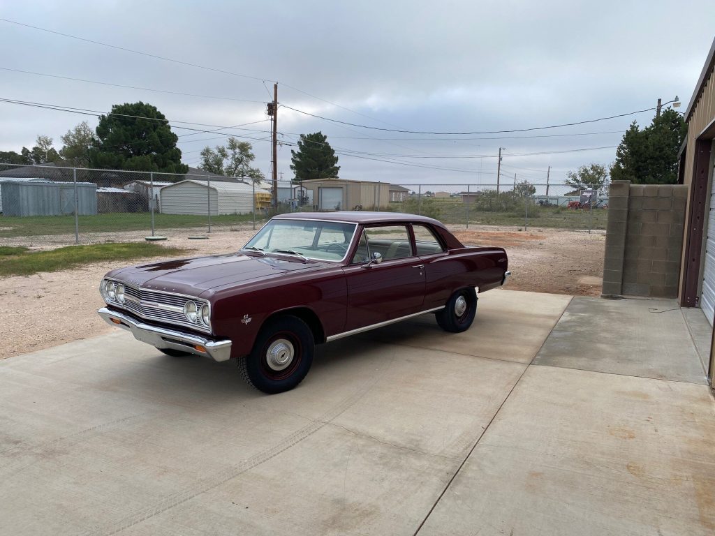 1965 Chevelle 300 two door sedan. Big Block 540CI, Dart Big M block, Scat forged balanced rotating assembly, comps hydraulic roller cam and comps Gold roller rockers, Edelbrock square port heads and intake, quick fuel 880 VS SS carb, MSD ignition box and distributor, 7 quart pan, looks period correct. Auto Gear M-23 HD 4 speed, 11″ clutch w/ original 621 bellhousing, GM 12 bolt rear end w/ 373 Posi. All new Factory wiring harnesses, weather stripping, brakes, interior.