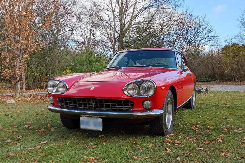 Ferrari 330 GT (chassis 6241) is powered by its matching-numbers 4.0-liter Colombo V12. 1,099 330 GTs were produced, half of which were Series I variants with quad headlamps and floor-mounted pedals. The color was changed to red at sometime.Work included either replacing or rebuilding the front wheel bearings, front brakes, water pump, and rear shocks.