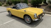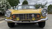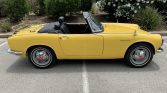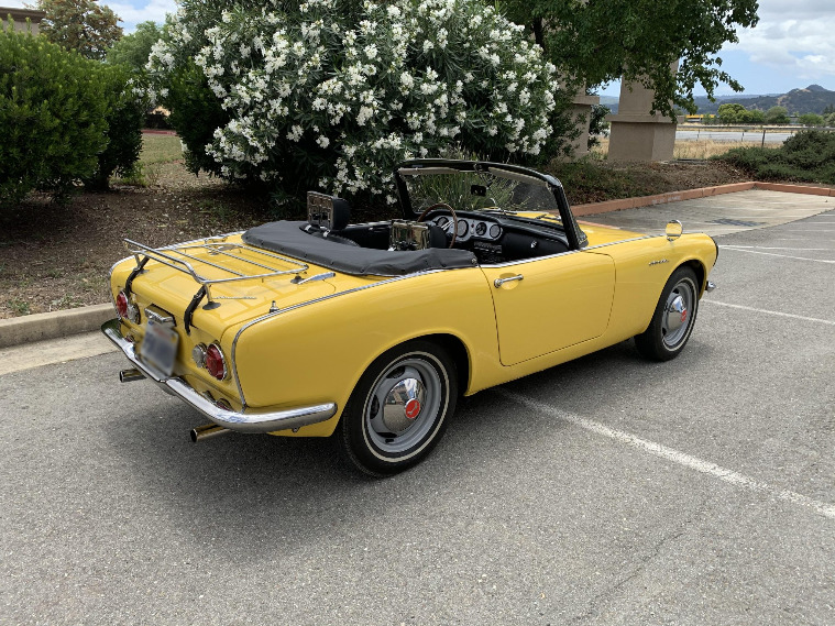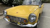 1965 Honda S600, roadster, 606cc inline-four engine, four-speed manual transmission, yellow with black interior, body-color hardtop, dual Mikuni carburetors, 13″ wheels.