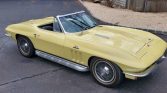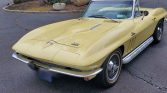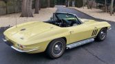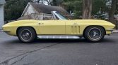 1966 Chevrolet Corvette Roadster . Finished in the Original Color 984 Sunfire Yellow Numbers Matching L72 427/425hp Motor Numbers Matching 4 Speed Transmission Numbers Matching Posi Rear with 3:70 Gears Knock Off Wheels Wrapped in Gold Lines Side Pipes Power Window Teak Sterring Wheel Power Antenna Custom AM/FM Radio with USB and Aux In and Kick Panel Speakers Transistorized Ignition .