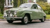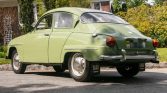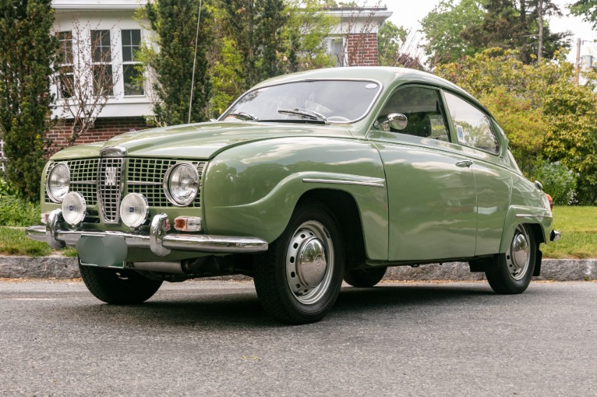 Work has included installation of new suspension components, overhauls of its triple Solex carburetors, interior work, and finally having its 841cc three-cylinder two-stroke engine and four-speed manual transaxle rebuilt. The car is finished in green over a black and white vinyl interior, and features driving lights, a Saab AM radio, dual side mirrors, and painted steel wheels with Saab hubcaps.