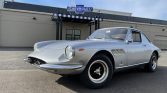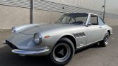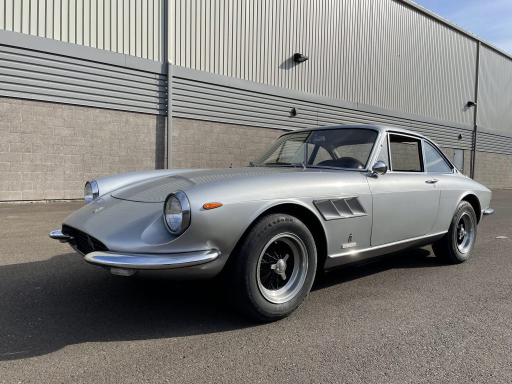 Finished in silver over black leather, it is powered by a numbers-matching 4.0-liter Colombo V12 with triple Weber carburetors. Additional equipment includes a rear-mounted five-speed manual transaxle, power-assisted four-wheel disc brakes, Borrani wire wheels, power windows, and an AM/FM radio. The braking system was refreshed and the carburetors cleaned in 2021.
