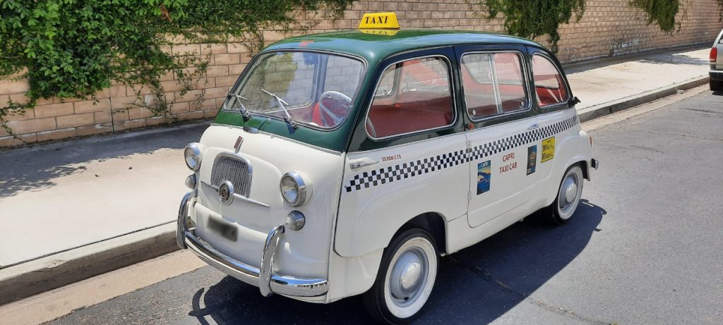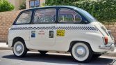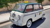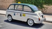 The car was subsequently refinished in green and white with Capri taxi cab livery added in the form of removable stickers and a magnetic roof light. The interior was also refreshed with red upholstery and black carpets. Power comes from a 767cc inline-four paired with a four-speed manual transaxle, and features include front and rear bench seats and sliding rear-door windows.
