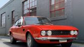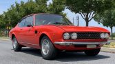 The car is finished in red over a black leather 2+2 interior and is powered by a Ferrari-designed 2.0-liter Dino V6 paired with a 5-speed manual transmission. The car is equipped with 14? Cromodora wheels, a vintage Continental AM/FM radio, power windows, and a factory dual exhaust system.