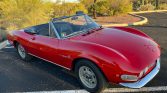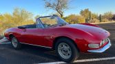 It is finished in red over black leather upholstery, and features include a five-speed manual transmission, a black soft top, MSD ignition, an aftermarket stereo, triple Weber carburetors, and 14? Cromodora wheels. A replacement engine was installed in 2011, while more recent work in 2021 consisted of powder-coating the wheels, installing a high-torque starter, and replacing the brake lines, filters, and ignition wires.