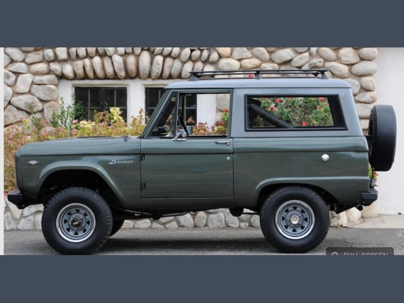 Restoration completed in 2021 with original 289 CI engine and column-shift 3-speed transmission. New dual exhaust, 3-inch body lift. New rear air shock. Aftermarket custom bumpers, spare tire and roof rack powder coated in Satin Black. Jade Green Metallic exterior with Meteor Gray accents. Undercoated inside and out. New All-Terrain BF Goodrich tires finish off this beauty!
