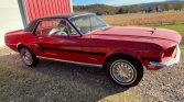 1968 Ford Mustang GT California Special 2 Door Coupe with 289 ci V8 with 4 bbl with 3 speed automatic. Over the last 50 years the engine was swapped, hood replaced, and fog lights removed. Air conditioner is not working. Car has been repainted and interior restored. It starts, runs and drives great.