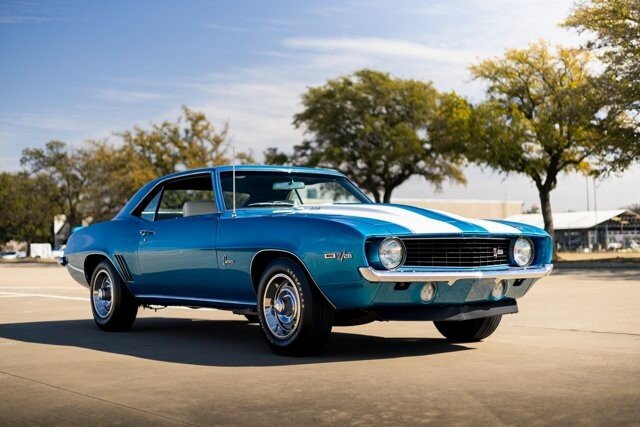 1969 Chevrolet Camaro Z28 True Frame off restoration. Features Include: Correct DZ 302/290 HP Engine Factory X33 Z28 Muncie M20 4 Speed Manual Transmission 12 bolt 4.10 Positraction rear end Factory paint code 71-71 LeMans Blue with White stripes Cowl Induction Hood Power steering Power disc brakes Lemans Blue with White stripe and White houndstooth interior Tilt steering column .