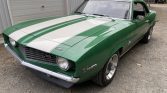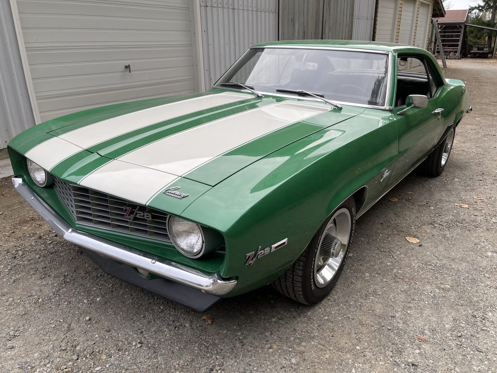 1969 Camaro Z/28, X77, Protect-o-Plate, Rally Green/White stripes, 302 , M22 transmission, chambered exhaust, exceptional original condition, low mileage (38000), straight body, drives perfectly, very well documented and appraised, 03D last week of March build 69, 4th owner, standard black interior, flat hood, D80 rear spoiler, console with gauges, 8000 tach, new fuel tank.