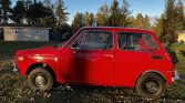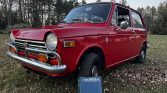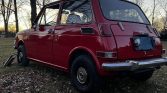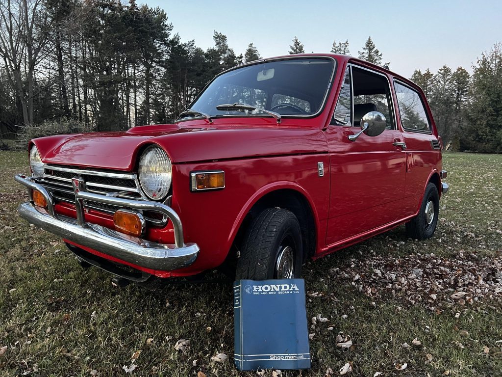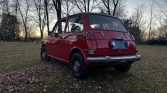 It is finished in red over red upholstery and powered by an air-cooled 598cc four-stroke twin paired with a four-speed manual transaxle. Equipment includes a factory stereo, 10? wheels, a left-side mirror, a two-into-one exhaust system, and a chrome grille, bumpers, and trim. Work included refinishing the exterior and replacing the master cylinder.