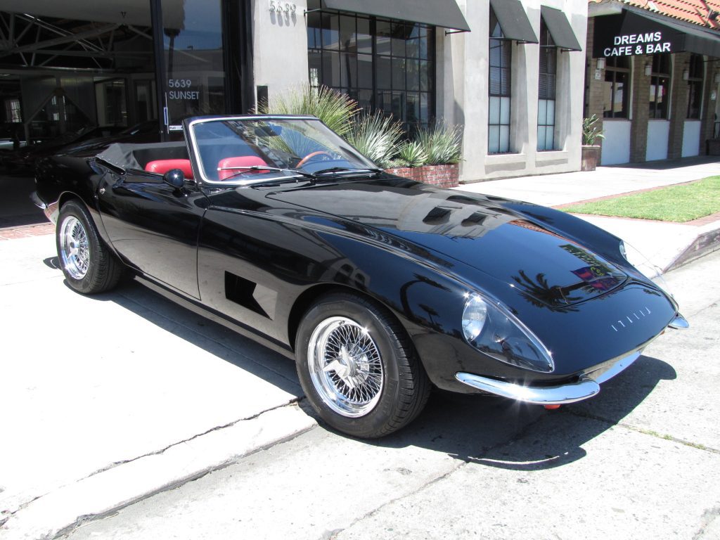It is powered by a Ford 351ci V8 paired with a 4-speed automatic transmission, and the car wears a repaint in black over a red and black leather interior. Features include heated seats, a console-mounted Heuer Super Autavia chronograph, a black softtop and boot cover, and wire wheels. Maintenance in the last five years included new brake lines, a new brake master cylinder, and a new battery.