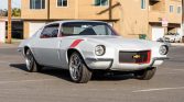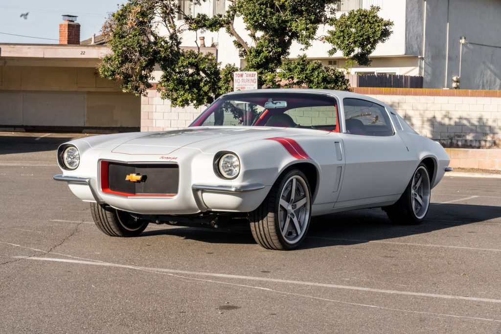 Finished in matte white over orange and black leather upholstery, the car is powered by a 7.0-liter LS7 V8 mated to a four-speed automatic transmission. Features include a hand-formed nose and rear spoiler, fabricated bumpers and lighting, Art Morrison chassis sections, 19 Hot Rods by Boyd wheels, SSBC disc brakes, a Ridetech adjustable air suspension, Corbeau sport seats with racing harnesses, and a Kenwood touchscreen infotainment system.