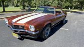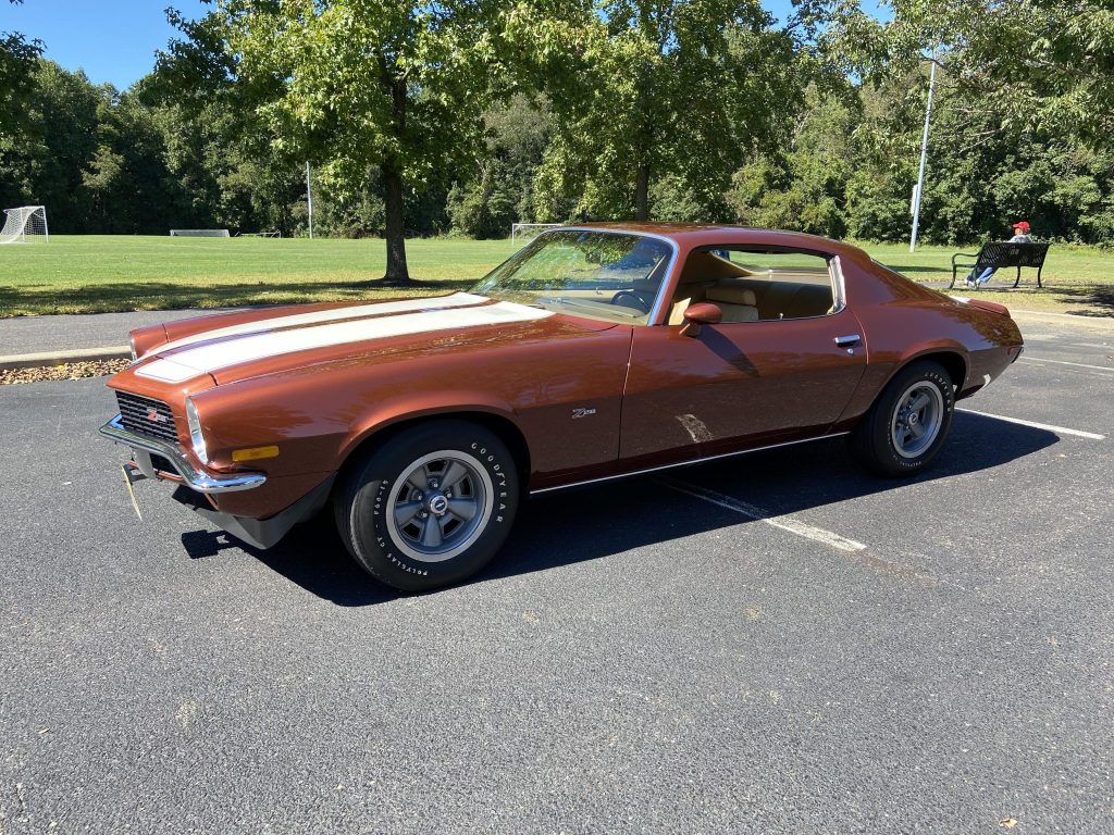 Finished in Classic Copper over saddle vinyl, and its numbers-matching 350ci V8 is paired with a four-speed manual transmission. Other features include white stripes, front and rear spoilers, dual exhaust, 15? wheels, power-assisted front disc brakes, and an AM radio.