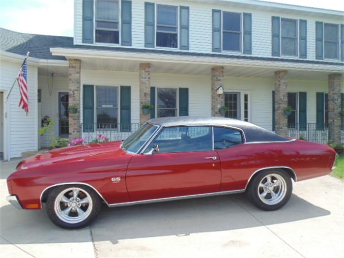 This car started life as a 1972 Malibu with a 350ci 2-barrel engine. It has since been restored and modified with a 1970 front clip and SS rear bumper. This was a nearly rust-free car with the exception of the drivers floor section which was professionally replaced. The car was repainted in Toreador Red Metallic which looks awesome and is offset nicely by the new vinyl top, brightwork, and 17" aluminum wheels. Note too the SS badging and…