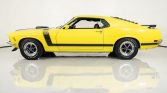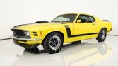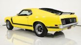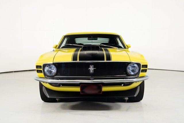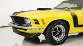 This 1970 Ford Mustang Boss 302 for sale has a Date Code Correct 302c.i. V8 w/ 4bbl Carb, 4 Speed Manual Transmission, Ford 9 Rear w/ 3.91:1 Traction-Lok, Bright Yellow Exterior w/ Correct Stripes, Correct Black Bucket Seat Interior, Power Steering, Power Disc Brakes, Rear Window Louvers, Fold Down Back Seat, SW Console Mounted Gauges for Temp and Oil, Rim Blow Tilt Steering Wheel, Nicely Optioned Boss 302!