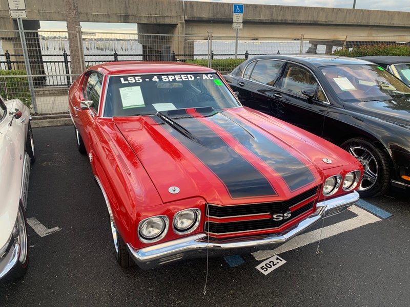 1970 Chevrolet Chevelle SS 454 Coupe,454 LS5 V-8 Engine,Muncie 4-Speed Transmission,Red Exterior over Black Interior,Correct 512 Casting Number,12-Bolt Rear End,Functional Cowl Induction,Tilt Steering Column,Factory Air,Tachometer and Gauges,Power Steering and Power Disc Brakes,Upgraded to Flowmaster Exhaust,Buckets and Console,Factory Tinted Glass,Seatbelts,Dual Mirrors,Upgraded Radio w/ 4 Speakers,18″ and 30″ Wheels,30,500 Actual Miles,