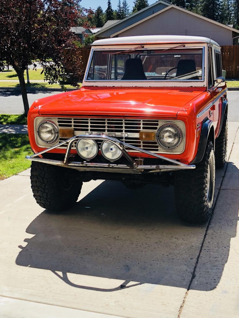 331 Stroker w/ aluminum heads, Art Carr C4, Built Dana 20 T shift twin stick, custom drive lines, 9″ rear w Strange Racing 3rd member/35 spline axles, detroit 4.56s. Dana 44 front w detroit 4.56s. Tuned dual exhaust, WH extreme shock hoops, Protofab rear shock hoops, new fuel tanks and sending units. Stroppe chrome rollbar. Pre runner front bumper w Hella H1000s. New headliner, new door, tailgate, roof and windshield seals, new Chrome rear bumper.