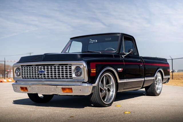 This stunning C10 is ready to drive anywhere with a ton of modern features. Features Include: Tubular Suspension QA1 shocks on all corners Built 5.3L Cammed LS Fast EFI Fuel Injection Transmission cooler 22: Custom Wheels 4 Speed automatic with overdrive Dakota Digital Gauges Vintage Air Full Custom Interior with Bucket Seats