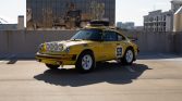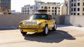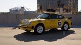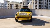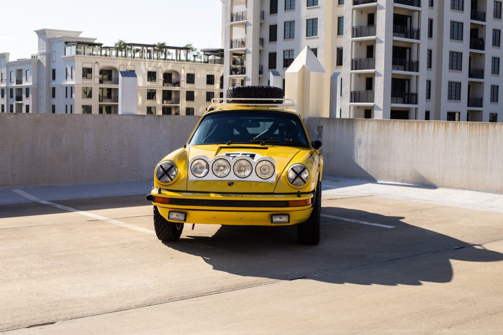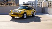 The car is finished in yellow over black upholstery, and power comes from a replacement 3.2-liter flat-six paired with a five-speed manual transaxle. Additional modifications include PMO carburetors, JE pistons, a K-Line short-shift kit, Elephant Racing suspension components, a hood-mounted light pod, OMP racing buckets, a half roll cage, RS-style door panels, a Sparco steering wheel, and a Stilo in-car intercom with headsets.
