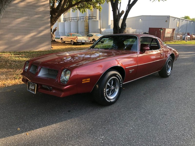1976 Pontiac Firebird Esprit Coupe,Matching Number 350 V-8 Engine,Automatic Transmission,Firethorn Red Exterior (Paint Code 36) over Red Interior,Vinyl Top,One Lady Owner for 38 Years,Only 28,181 Actual Miles,Air Conditioning,Power Steering,Power Brakes,Wood Grain Trim,Delco AM/FM Stereo,Rally II Wheels,Original Paint and Interior,Original Books and Manuals,Original Spare Tire Never Used,Remarkable Survivor,