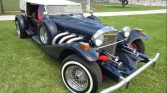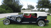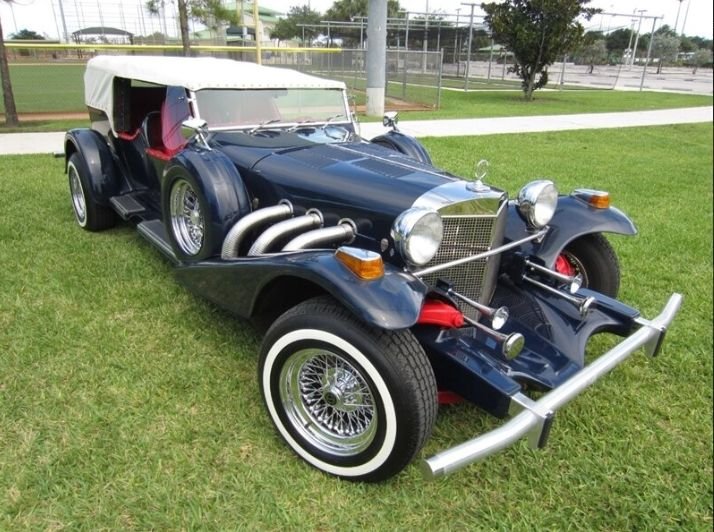 1977 Excalibur Series III Phaeton,V-8 Engine,Automatic Transmission,Dark Blue Exterior over Bright Red Interior with Dark Blue Piping,White Convertible Soft Top,Dual Side Mounts,Wind Wings,Chrome Wire Wheels,White Wall Tires,Extended Body with Full Back Seat,Very Rare,