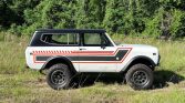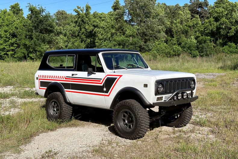 Motorcar Studio presents this 1978 International Scout II in matte white with retro orange and grey stripe applique. Equipped with GRC front and rear bumpers, 17-inch Mickey Thompson "Deegan" alloy wheels, and LED lighting, it's a head-turning truck. The interior features Corbeau seats, wood-rimmed steering wheel, Kenwood stereo, and a roll cage. Under the hood is a 304 cubic inch V8 paired with an automatic transmission. Recent service includes a new radiator, electronic ignition, Holley carburetor, brakes, exhaust,…