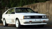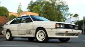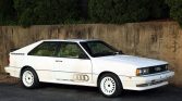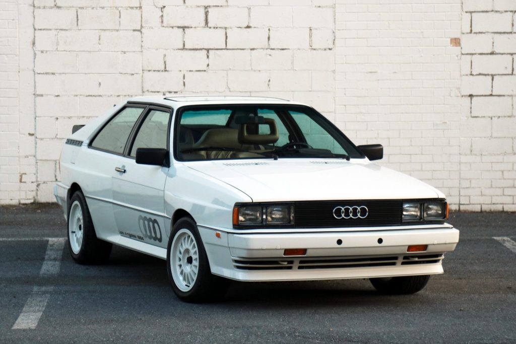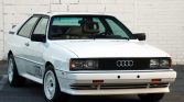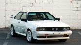 Power is provided by a turbocharged 2.1-liter inline-five, which is mated to a five-speed manual transaxle and all-wheel drive with locking center and rear differentials. The car is finished in Alpine White over cream leather, and additional features include a removable roof panel, color-matched 15×8? Ronal wheels, air conditioning, cruise control, power windows, and a factory AM/FM cassette stereo.