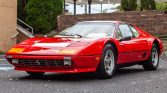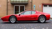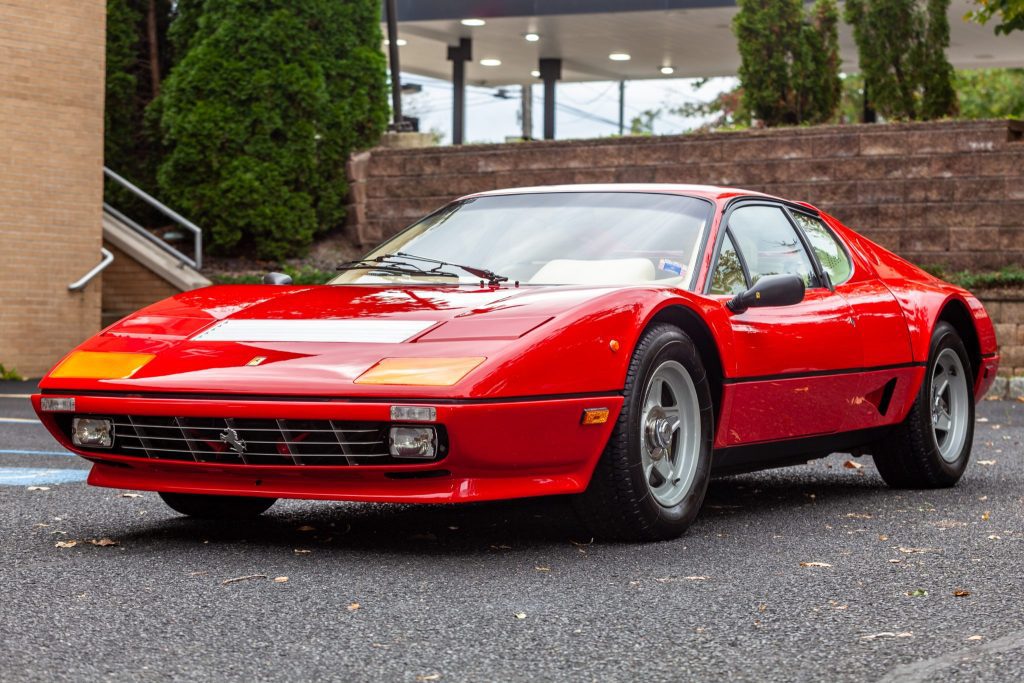 Ferrari 512 BBi is one of 1,007 produced and is powered by a mid-mounted 4.9-liter flat-12 paired with a five-speed manual transaxle. The bodywork is finished in Rosso Corsa over Crema leather, and equipment includes Bosch K-Jetronic fuel injection, metric center-lock wheels, air conditioning, a gated shifter, a leather-wrapped Momo steering wheel, and a factory Pioneer cassette stereo with a graphic equalizer.
