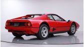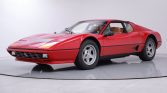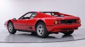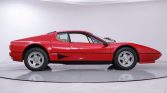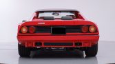 The car is finished in red over tan leather upholstery, and power comes from a mid-mounted 4.9L flat-12 paired with a five-speed manual transaxle. Features include Bosch K-Jetronic fuel injection, metric-sized Cromodora wheels, power windows, air conditioning, a gated shifter, a leather-wrapped MOMO steering wheel, and a Blaupunkt cassette stereo.