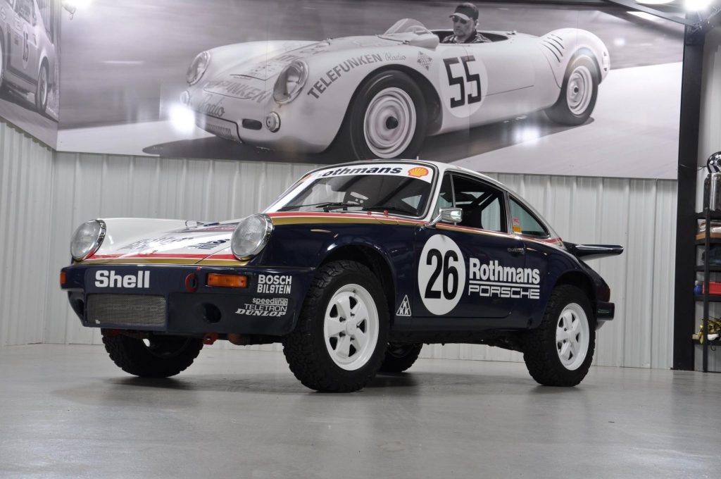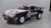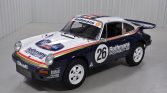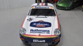 The car is finished in blue and white Rothmans Porsche racing livery and is powered by a 3.2-liter flat-six paired with a G50 five-speed manual transaxle. Modifications include a custom-built engine, MCS adjustable shocks, Tarett sway bars, white 18? Jongbled three-piece Fuchs-style wheels, and a Wevo shifter kit.