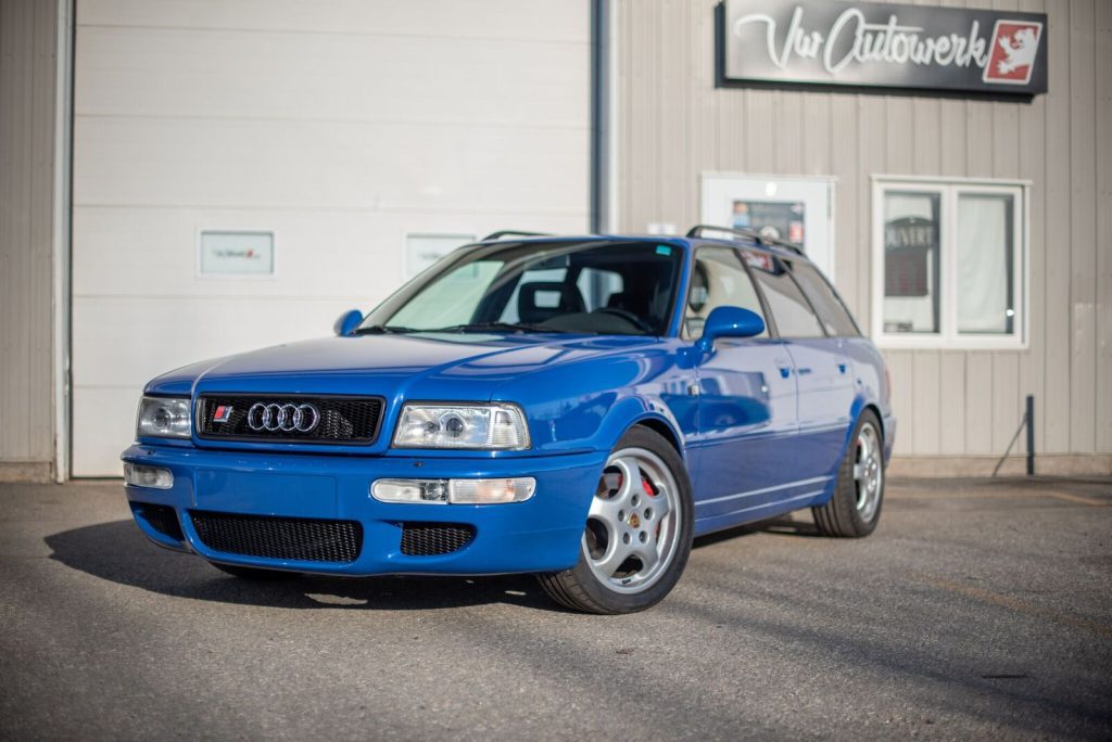 The car is finished in RS Blue over a black leather interior, power is provided by a turbocharged 20-valve 2.2L inline-five mated to a six-speed manual gearbox and Quattro all-wheel drive. Modifications include 2Bennett Audimotive coilovers, a Supersprint exhaust system, and an Alpine head unit.
